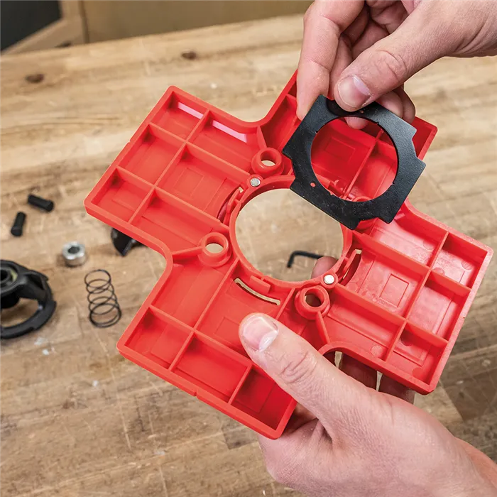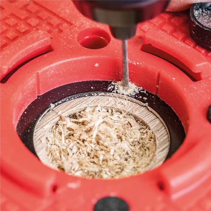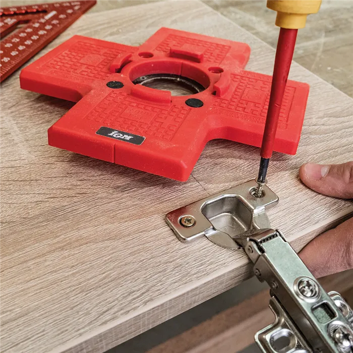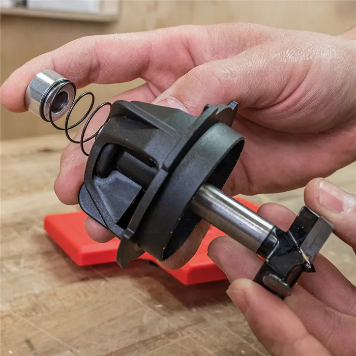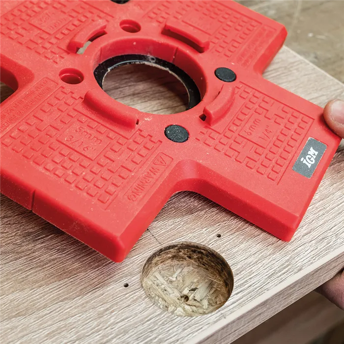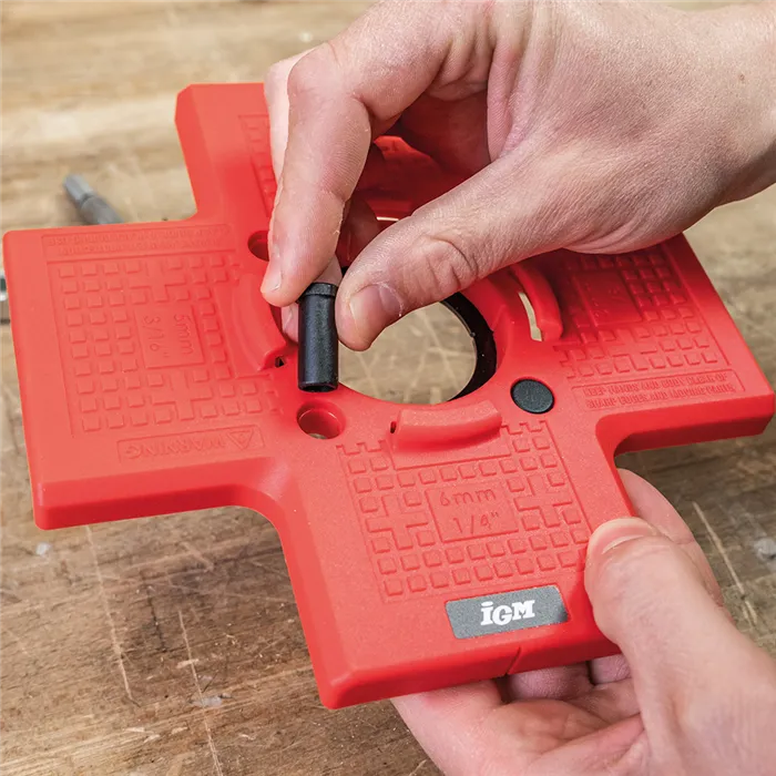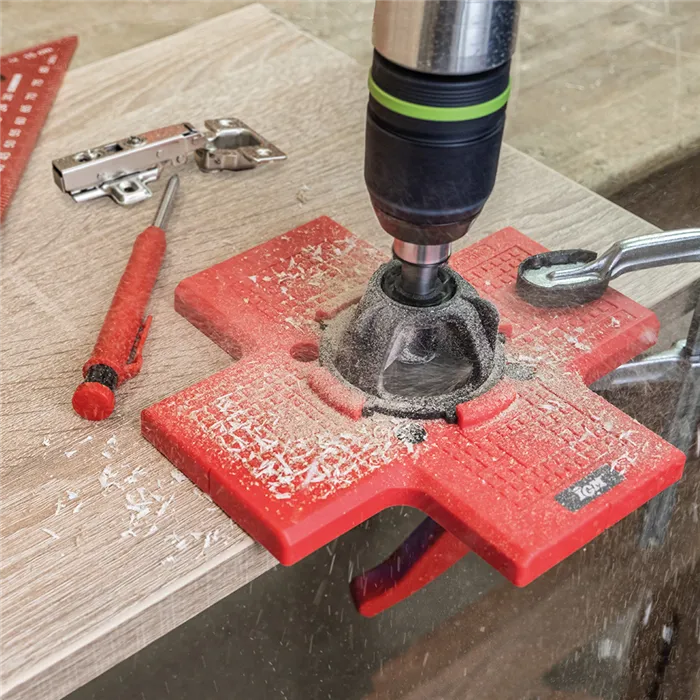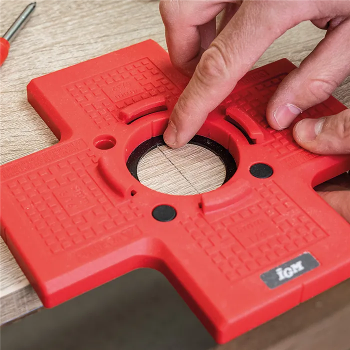 • Snadné a rychlé vrtání misek nábytkových pantů.• Pro panty s miskou 35 mm, kompatibilní s výrobci Blum, Strong či Hettich.• Nastavení odsazení od hrany dvířek ve vzdálenosti 3, 4, 5 a 6 mm.• Magnetická šablona na vrtání otvorů pro vruty pantu. Montáž dvířek ke korpusu Vám usnadní tato šablona pro vrtání 35 mm misek nábytkových pantů. NK panty (závěsy) namontujete během chvilky bez nutnosti zdlouhavého měření a značení. Šablonu se sukovníkem 35 mm s válcovou stopkou můžete upnout do jakékoli vrtačky. Díky hloubkovému dorazu vyvrtáte misku vždy do stejné hloubky, v materiálu o minimální tloušťce 18 mm. Šablona je vybavena plastovými dorazy, kterými v rychlosti nastavíte odsazení misky od hrany dvířek ve vzdálenosti 3 mm, 4 mm, 5 mm nebo 6 mm. Součástí je i magnetická šablona na vyvrtání otvorů pro vruty, kterými se připevňuje pant na dvířka (vrták není součástí balení). Otvory mají rozteč 45 mm a jsou vzdáleny od osy misky 9,5 mm, magnetickou šablonu tak lze použít například pro panty od výrobců Blum, Strong či Hettich.• Průměr misky: 35 mm• Odsazení od hrany: 3, 4, 5, 6 mm• Minimální tloušťka materiálu: 18 mm• Doporučené otáčky pro vrtání: 1700 – 2400 ot./minObsah balení:• Šablona pro vrtání misek pantů• Sukovník 35 mm• Magnetická šablona• Hloubkový doraz• 2x Plastový doraz• Inbus 3 mm