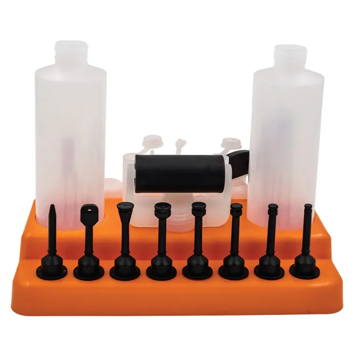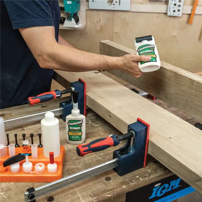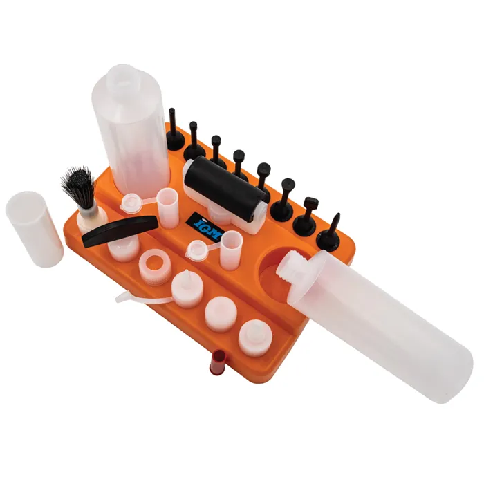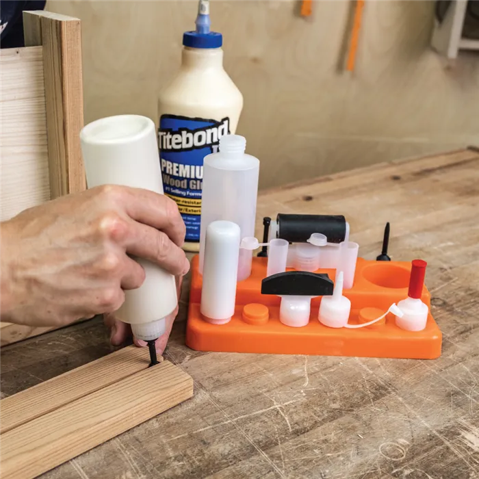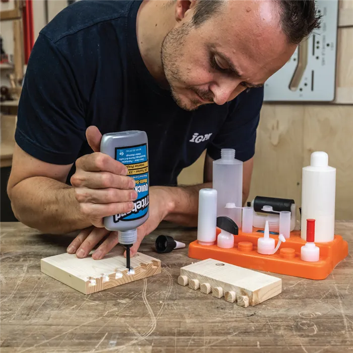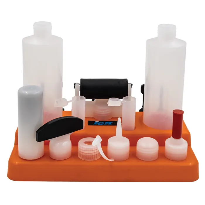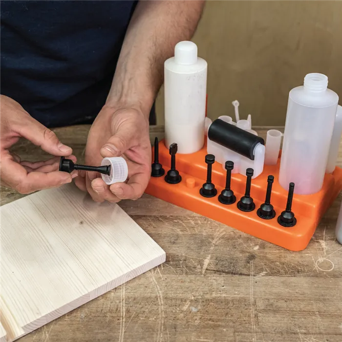 IGM Sada pro nanášení lepidla s třinácti různými nástavci vám usnadní lepení dřevěných dílců, ať už frézovaných nebo při spojování pomocí kolíků či lamel. Kromě těchto nástavců v sadě naleznete 2 lahve na libovolné lepidlo, 2 víčka na nástavce, víčko na lahev a praktický stojánek, na kterém si všechny části můžete uložit. Závit nástavců je kompatibilní s plastovou lahví Titebond 118 ml a 237 ml. Všechny nástavce tak můžete našroubovat přímo na lahev Titebond lepidla.