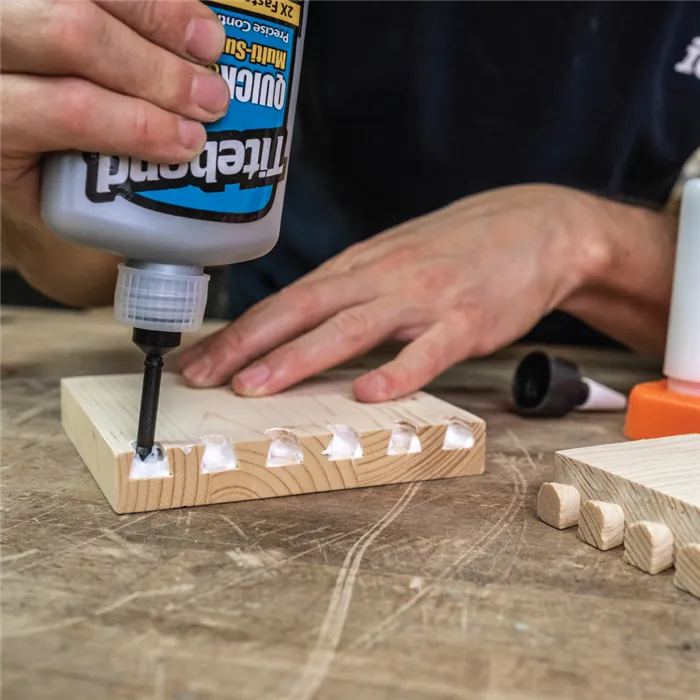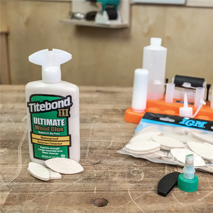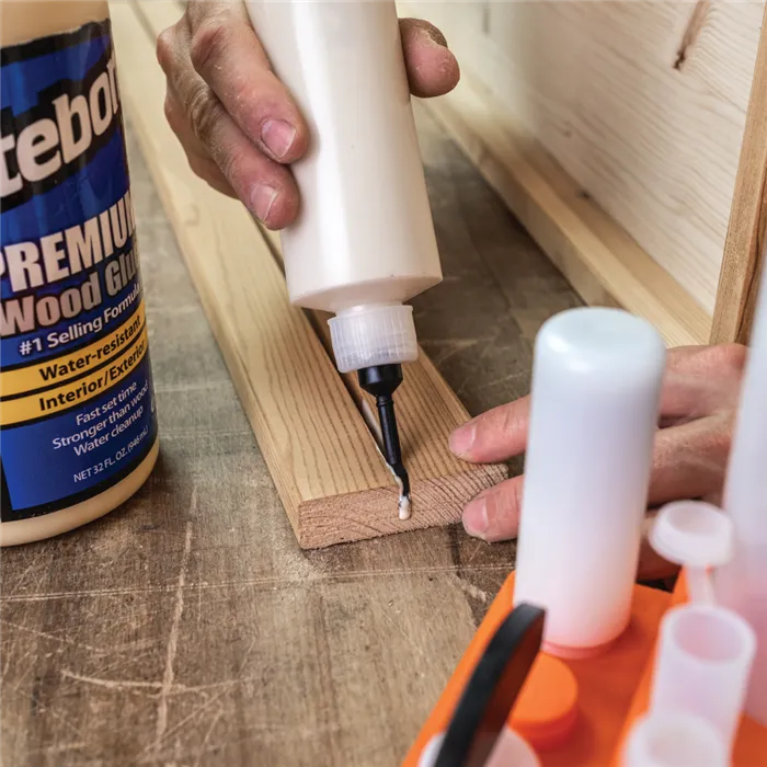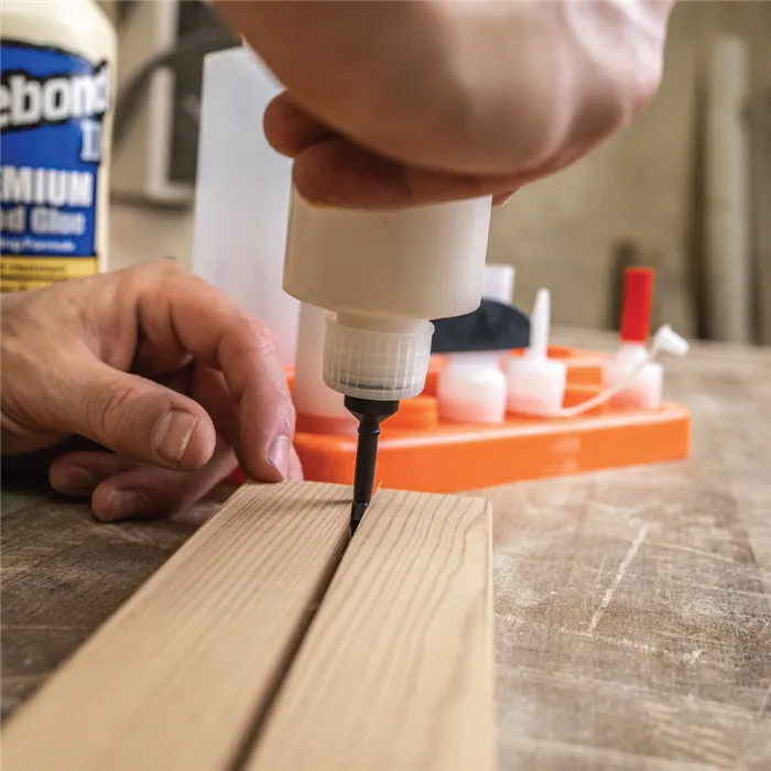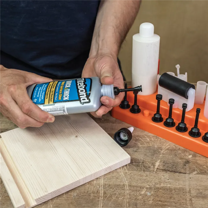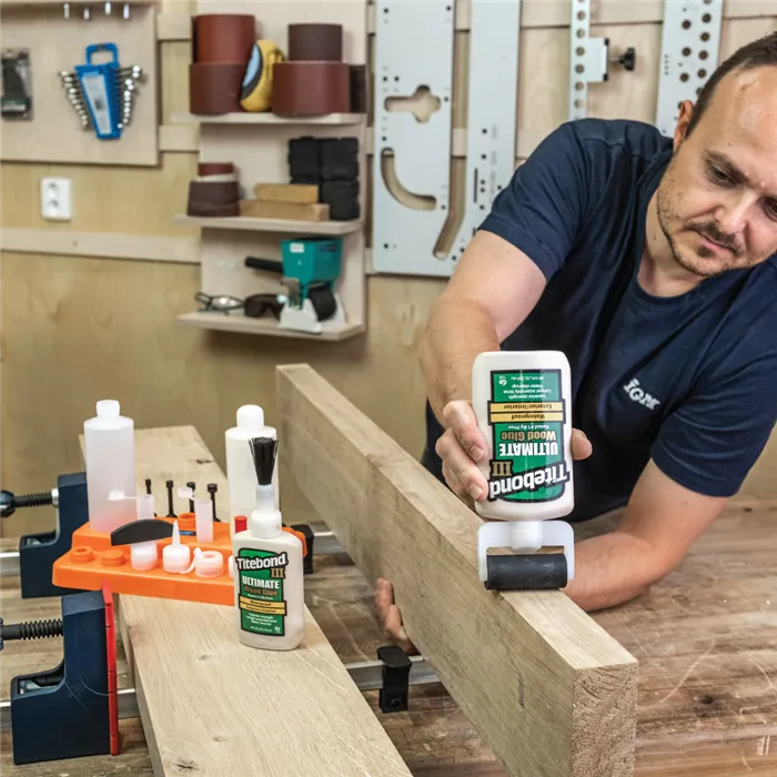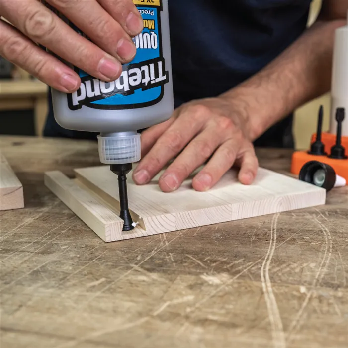 Univerzální sada pro nanášení lepidla s 13 nástavci a dvěma lahvemi usnadní přesné lepení dřeva. Kompatibilní s lahví Titebond 118 a 237 ml, ideální pro spoje kolíky, lamely i na drážky.