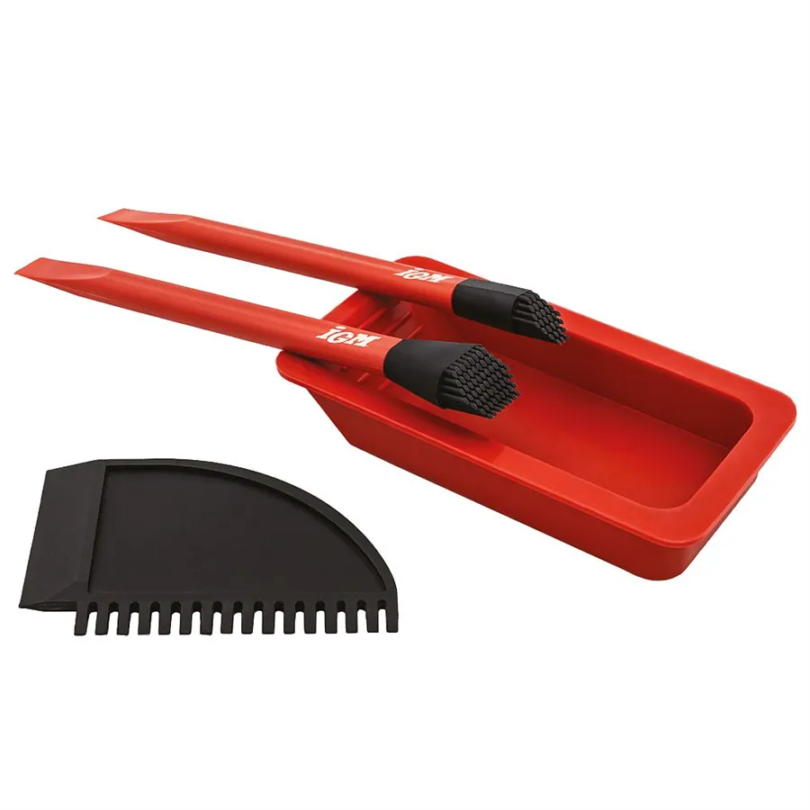 IGM Silikonová sada na lepení se dvěma štětci o šířce 13 a 24 mm, silikonovou stěrkou a vaničkou vám usnadní nanášení lepidla na dílce. Měkké silikonové štětinky na nástavci lepidlo rovnoměrně rozetřou na úzkých i širších plochách.