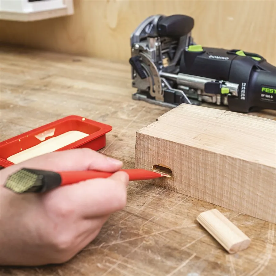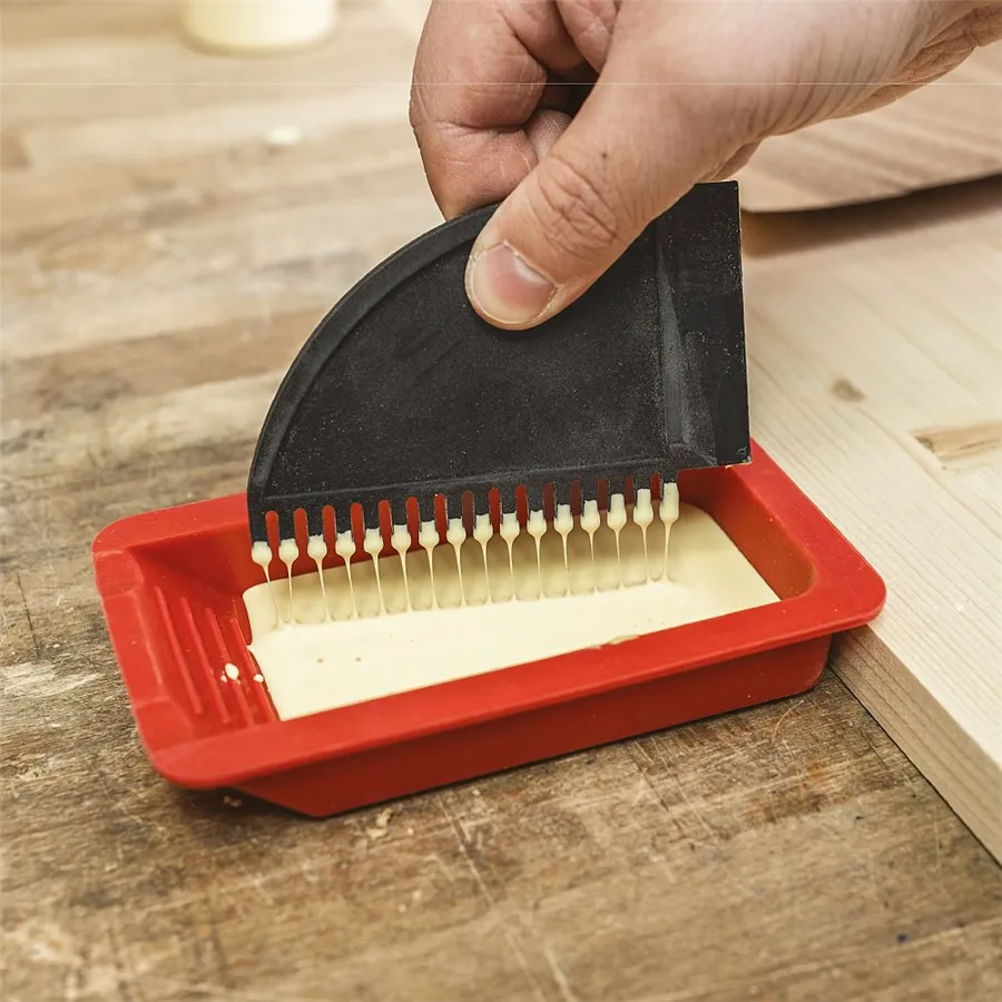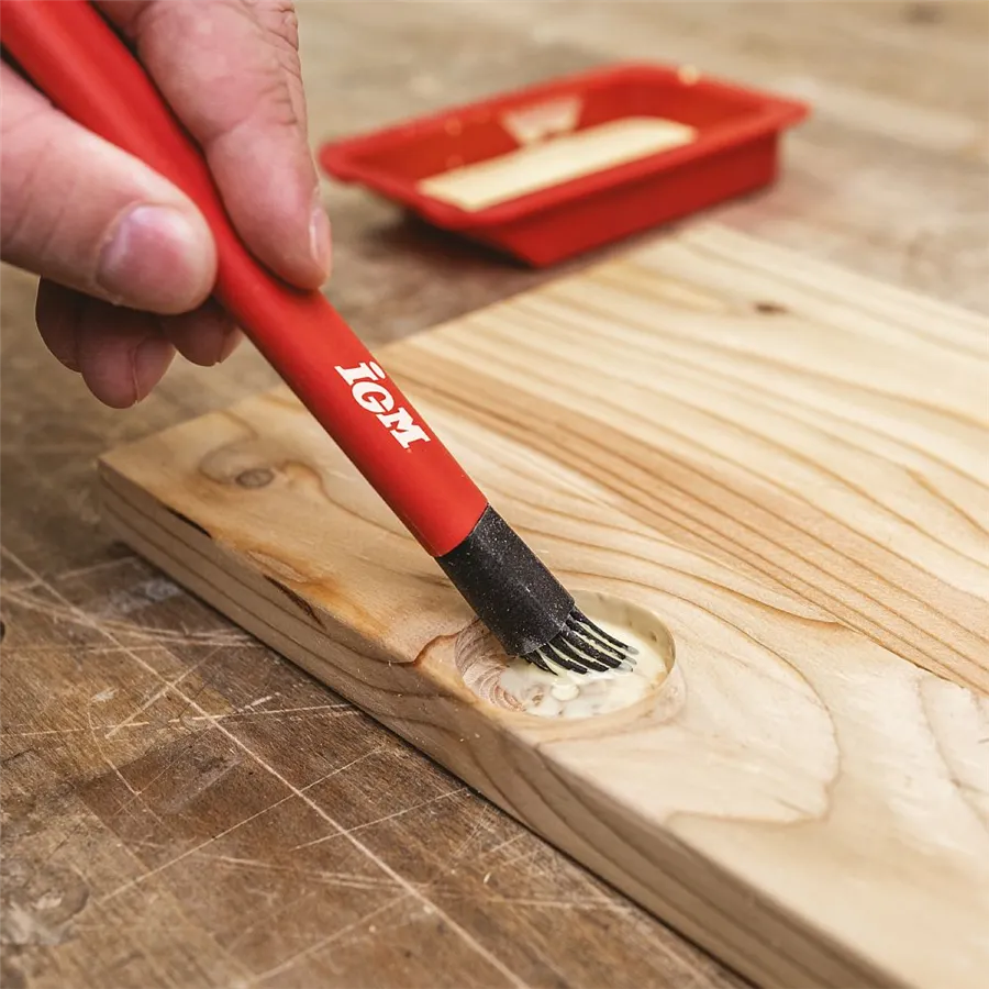 Silikonové štětce pro pohodlné nanášení lepidla na dřevo. Dvě velikosti štětců včetně silikonové stěrky a vaničky pro univerzální použití. Snadno čistitelné.