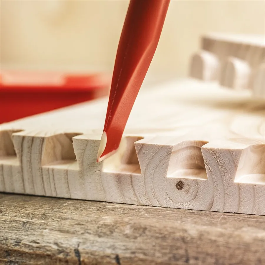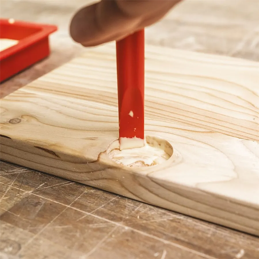 Zploštělý plastový konec rukojeti je mírně pružný pro pohodlnou aplikaci. Díky jeho délce 40 mm rozetřete lepidlo i v hlubokých dlabech či rybinových spojích.