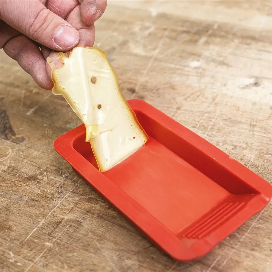 Stěrka, vanička a nástavce štětců jsou vyrobeny ze silikonu, který zaručuje snadné čištění. Po dokončení práce nalijte přebytečné lepidlo s pomocí prohlubní na straně vaničky zpět do nádoby. Tyto prohlubně můžete rovněž využít jako opěrku na štětce, abyste si během práce neznečistili pracovní plochu. Zbytky lepidla na štětcích i ve vaničce nechte zaschnout a následně jej jednoduše odloupněte, případně vše ihned po práci omyjte pod vlažnou vodou.