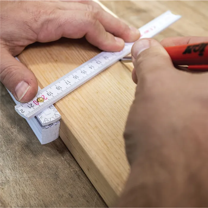 • Funkce úhloměru díky vyznačené úhlové stupnici pod kloubem lamely (15°, 45°, 60°, 75°, 90°, 75°, 60°, 45°, 15°).