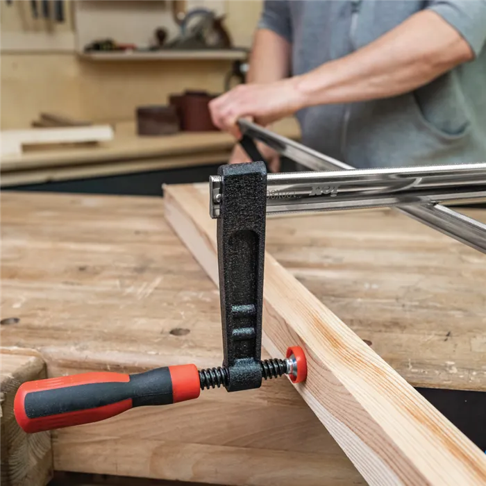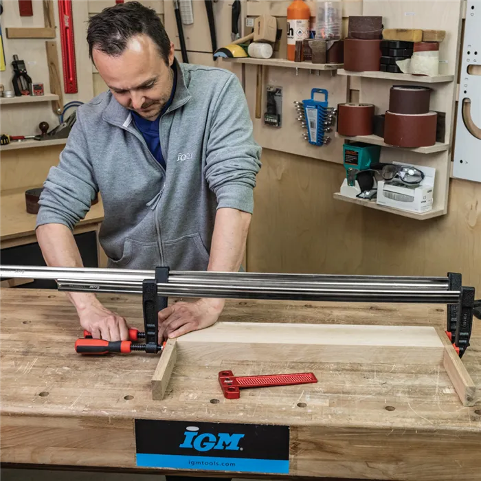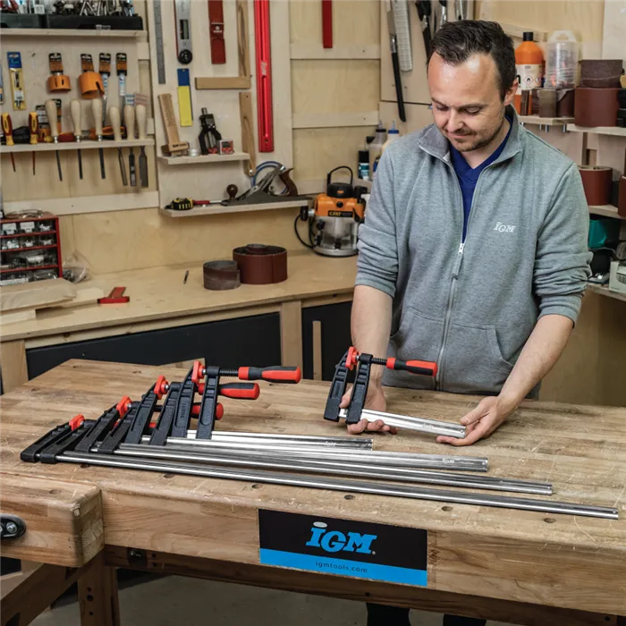 IGM Šroubové svěrky se hodí do každé dílny pro pevné stahování jakéhokoli materiálu, ať už třeba jako truhlářské ztužidlo při lepení korpusů nebo konstrukčních dílů. Šroubové svěrky jsou ideální volbou pro stahování, při kterém je potřeba velká a stabilní upínací síla, která u těchto svěrek činí až 460 kg.Vodicí tyč z poniklované oceli tažené za studena je profilovaná pro zamezení prohýbání. Robustní čelisti svěrky jsou vyrobené z temperované litiny, která jim dodává pevnost, a jsou osazeny měkkými plastovými podložkami pro ochranu upínaného materiálu. Hladce pohyblivé vřeteno se šroubuje pogumovanou rukojetí, která nikdy nevyklouzne.