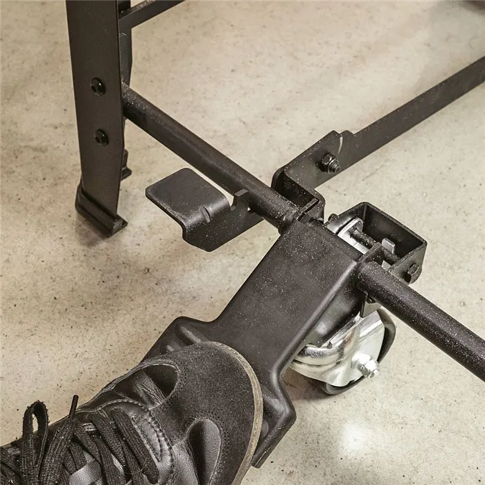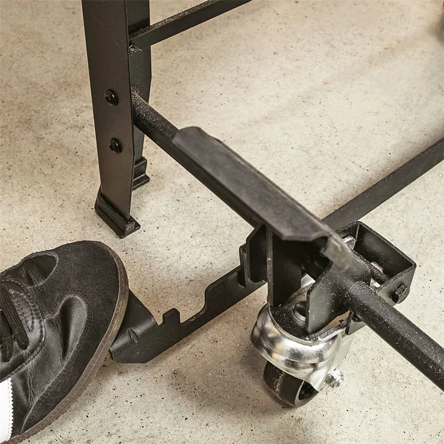 Robustní ocelová konstrukce zaručuje maximální stabilitu i při náročném provozu. Díky pedálovému mechanismu a integrovaným kolečkům lze se stojanem snadno manipulovat – stroj jednoduše přemístíte tam, kde ho právě potřebujete.