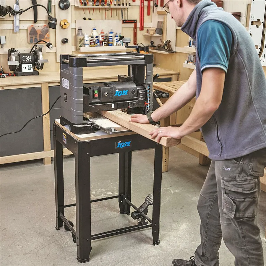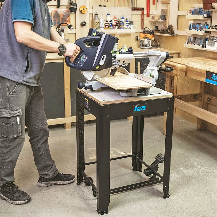 Podstavec IGM ST1M s nosností 200 kg spojuje vysokou stabilitu, mobilitu a praktičnost. Je vhodný pro tloušťkovací frézky, pily a další stolní stroje.