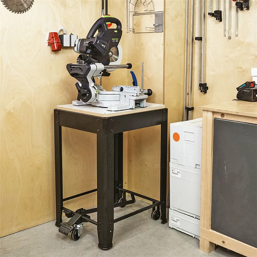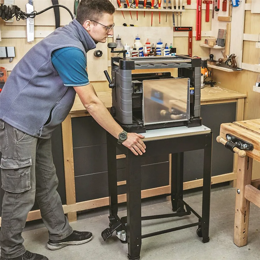 Univerzální pojízdný podstavec IGM ST1M s nosností až 200 kg představuje ideální řešení pro stabilní, bezpečné a zároveň mobilní umístění stolních strojů v dílně. Je vhodný pro tloušťkovací frézky, pásové i pokosové pily, stolní vrtačky a další dílenská zařízení podobné velikosti. Díky rovné pracovní ploše 570 × 500 mm lze stojan snadno přizpůsobit většině běžných stolních strojů. Pro upevnění vašeho konkrétního stroje je nutné vyvrtat otvory do MDF desky.
