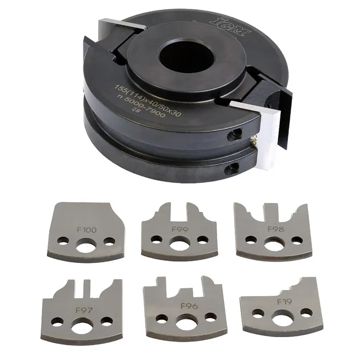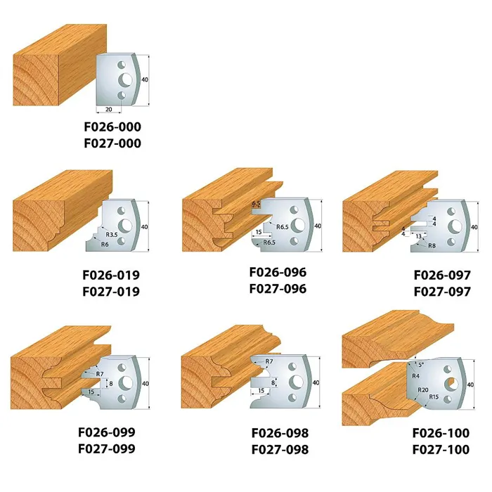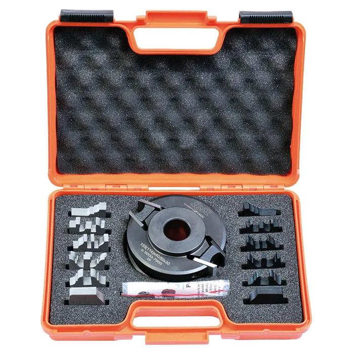 Velmi oblíbená sada univerzální frézovací hlavy a profilů pro výrobu dvířek a výplní z měkkého dřeva. Tělo nástroje je vyrobeno z kvalitní oceli nebo z tvrzené hliníkové slitiny (ALU) s vysokou pevností. Euro upínací systém zajišťuje perfektní a přesné upnutí nožů 40 x 4mm a 50 x 4mm kód F026 a omezovačů F027. Určeno pro ruční posuv MAN.Sada obsahuje: • Univerzální bezpečnostní frézovací hlavu.• 7 párů profilových žiletek a omezovačů 40x4mm.• Vše je dodáváno v luxusním plastovém kufru pro bezpečné uložení nástrojů.Parametry: Otáčky pro D136mm 5800–9000 ot./min., pro D156mm 5100–7400 ot./min., ruční posuv materiálu MAN.