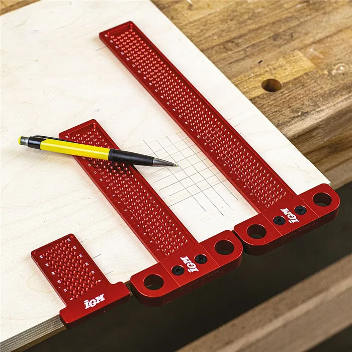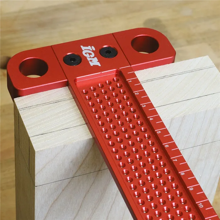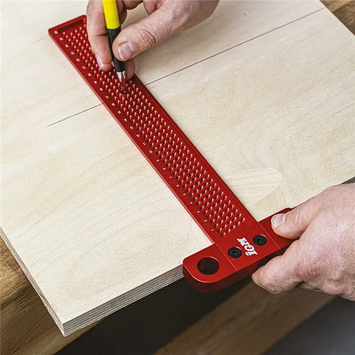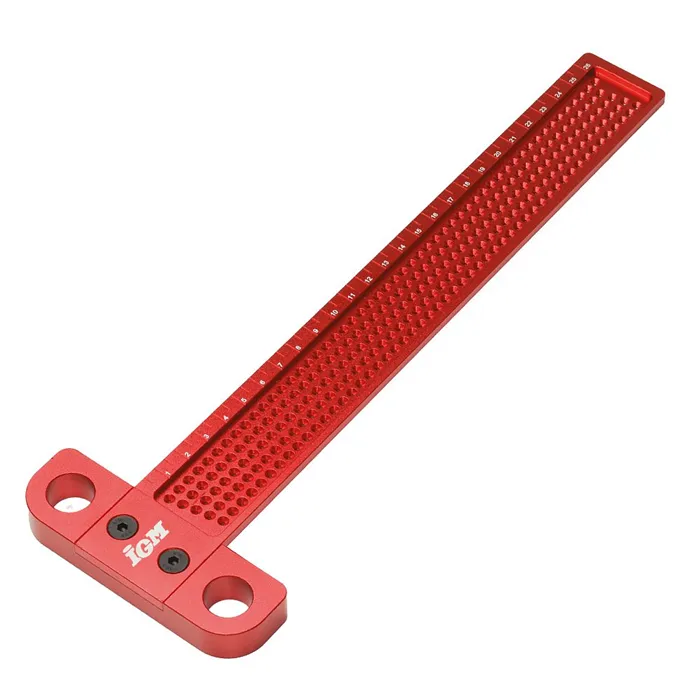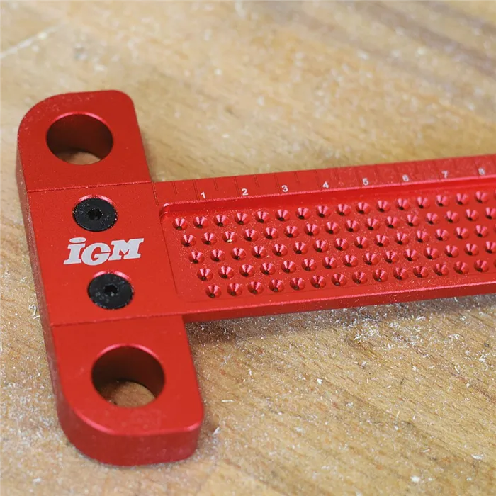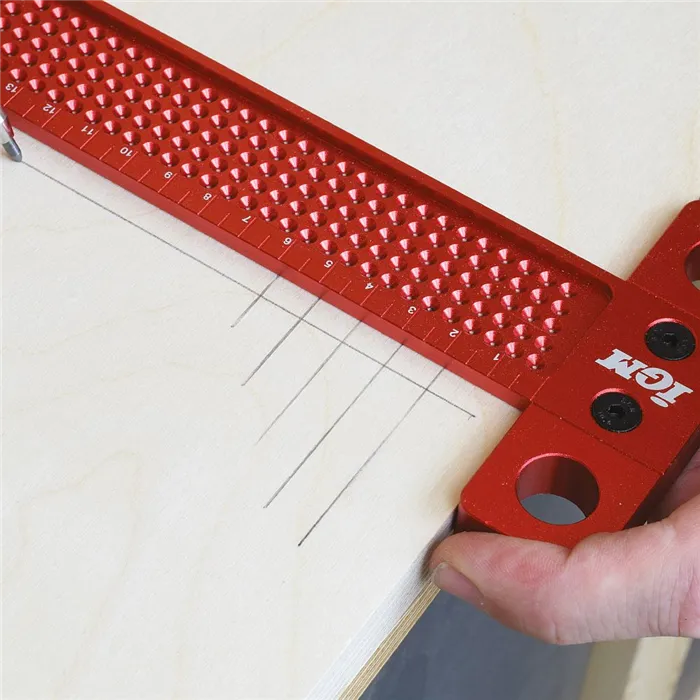 Přesný a snadno použitelný duralový příložník se značícími otvory. Za pomoci příložníku vytvoříte dokonalé rovnoběžné čáry. Vložte tužku do odpovídajícího otvoru a vytvořte rovnoběžnou čáru posouváním příložníku po hraně dílce. Rovnoběžnou čáru můžete rýsovat ve vzdálenosti 5 až 160 nebo až 260 mm. Každý otvor představuje 1 mm.