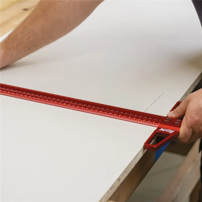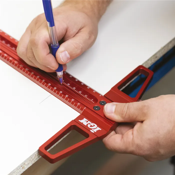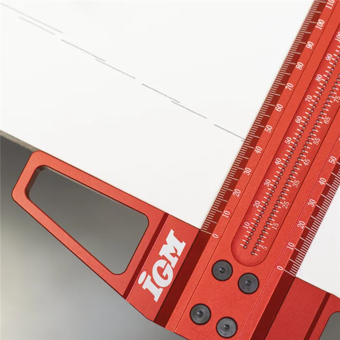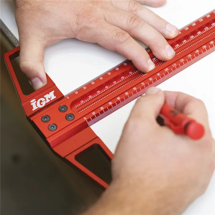 • Přesný duralový příložník.• Laserem značená stupnice po 1mm.• Okraje stupnice s 30° zkosením.• Značící otvory po 1 mm.• Možnost použití jako pravítko.Přesný značící a rozměřovací IGM příložník 600 mm je vyroben z eloxovaného duralu. Stupnice je značena laserem po 1 mm. Okraje stupnice jsou zkosené směrem k pracovní ploše pro přesnější rýsování. Příložník je vyroben ze dvou dílů, a to základny a pravítka, které do sebe perfektně zapadají díky CNC obrobení dosedacích ploch. Jsou spojeny 4 pevnými šrouby. Příložník lze také použít jako pravítko po odmontování základny. Uprostřed pravítka jsou ve dvou řadách značící otvory pro rovnoběžné značení po 1 mm. Stačí vložit hrot tužky do otvoru a nakreslit dokonale rovnou čáru podél prkna.• Materiál ze slitiny hliníku je odolný proti opotřebení a korozi.• Příložník je vhodný pro tuhy 0,5–1 mm.