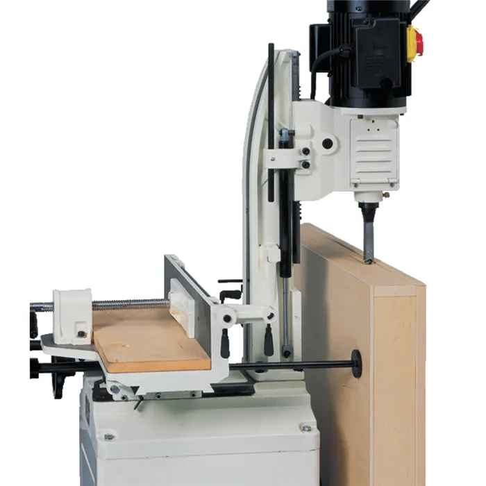 • Snadné spouštění a zvedání vřetene je zajištěno masivním hřebenem, ozubeným kolem v kombinaci s rybinovým vedením a plynovým pístem.• Boční hloubkový doraz pro přesnou hloubku.• Rychloupínací svěrák pro rychlé upnutí a uvolnění dílce.• Výkonný motor.• Otočný agregát o 180 °, umožňuje vrtání zámků v již hotových dveřích.• Přesné rybinové vedení, pracovní deska z MDF, posuv stolu ve dvou osách, podstavec s úložným prostorem a délkový doraz pro sériovou výrobu.Profesionální ostrohranná dlabačka JET 719A má robusní litinový stůl a podstavec s úložným prostorem, který je uzamykatelný. Výkonný 1300 W motor umožňuje vytvoření dlabu až 25 mm šiřokých. Pohyb stolu je zajištěn dvěma koly, jedním pro podélný a druhým pro příčný pohyb. Uložení v rybině zajišťuje plynulý pohyb díky přesným závitovým tyčím. Samozřejmostí jsou dorazy pohybu stolu umožňující přesné umístění dlabu na dílec. Stůl má plochu z MDF, ocelové pravítko a délkový doraz pro sériovou výrobu, který je velmi rychle nastavený. Na zadní straně stolu je umístěna stupnice, která v kombinaci s dorazy zajistí rychlé seřízení pro přesný dlab. Hmotnost vřetene a motoru je vyrovnána pomocí plynového tlumiče. Pohyb nahoru a dolů je vymezen dvěma dorazy, které si nastavíte podle potřeby. Ostrohranný vrták můžete upnout do dlabacích pouzder, 19 mm nebo 20,6 mm. Středový vrták je upnutý ve sklíčidle 13 mm. Jedinečnou vlastností, kterou tato vrtačka nabízí, je otočné vřeteno o 180 °. To umožňuje vytváření dlabů například do hotových dveří bez složité manipulace.Ostrohranné dlabací vrtáky jsou určeny pro výrobu ostrohranných dlabů. Hadovitý vrták uprostřed hranatého pouzdra nejprve navrtá kulatou díru a ostrohranné pouzdro následně vysekne ostré hrany kolem vyvrtané díry. Hadovitý vrták je poháněn vřetenem a hranaté pouzdro je zafixované. K vyseknutí rohů dojde tahem hranatého pouzdra do materiálu, a to díky speciálním špičkám.• Typ: 719A• Doporučené použití: Profesionální výroba• Příkon / Výkon (230 V): 1300 / 750 W• Otáčky: 1450 ot./min.• Max. velikost dláta: 25 x 25 mm• Sklíčidlo: 13 mm• Max. zdvih: 200 mm• Max. výška obrobku: 195 mm• Rozměry pravítka: 90 x 520 mm• Rozměry stolu: 180 x 520 mm• Délka x šířka x výška: 550 x 550 x 1880 mm• Hmotnost: 125 kgSoučást balení:• Sklíčidlo 13 mm• Hloubkový doraz• Stojan s úložným prostorem• Vrtací válcová pouzdra (15,8; 19; 20,6 a 46 mm)• Velký držák dílce
