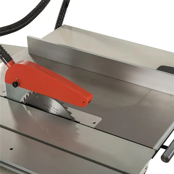 • Přesný broušený a rovný litinový stůl.• Masivní litinový držák pilového agregátu pro přesné řezy.• Jednoduché nastavení pomocí litinových ovládacích kol.• Podélné pravítko s integrovaným jemným nastavením.• Posuvný formátovací stůl z masivního eloxovaného hliníku.• Pravítko 2200 mm na výložníku 460x600mm pro dlouhé dílce.• Uzamykatelný vypínač proti neoprávněné manipulaci.• Odsávací hubice 100 mm pro odvod prachu a třísek.Kotoučová pila se zkracovacím vozíkem JTS-600X má robustní podstavec, paralelní pravítko, silný motor, zkracovací posuvný stůl 1000 x 255 mm s výložníkem a 80 mm hloubku řezu. Velmi snadno si poradí s masivním dřevem a deskovým materiálem. Tento stroj zvládne všechny požadavky v malé a střední dílně, na údržbě nebo v kutilské dílně.Snadno lze přesouvat po dílně pomocí mobilního podstavce (není součástí stroje obj.kód 121 - 708118).Ke stroji je možné dokoupit přesné úhlové pravítko +/-45 ° pro pokosové řezy (obj.kód 121-10000073).• Typ JTS-600X• Doporučené použití Profesionální výroba• Příkon / Výkon (230 V): 2,5 / 1,45 kW• Kotouč x upínání: 250 x 30 mm• Otáčky: 4000 ot./min.• Naklopení kotouče: 0–45 °• Max. výška řezu při 45 ° / 90 °: 54 / 80 mm• Max. délka řezu zakracovacího stolu: 610 mm• Max. šířka řezu na podélném pravítku: 610 mm• Prodloužení podélné části stolu: 650 x 270 mm• Zakracovací stůl: 1000 x 255 mm• Podpěrný stůl s teleskopickým ramenem: 460 x 600 mm• Hlavní litinový stůl: 800 x 350 mm• Odsávání: 100 mm• Hmotnost: 145 kg