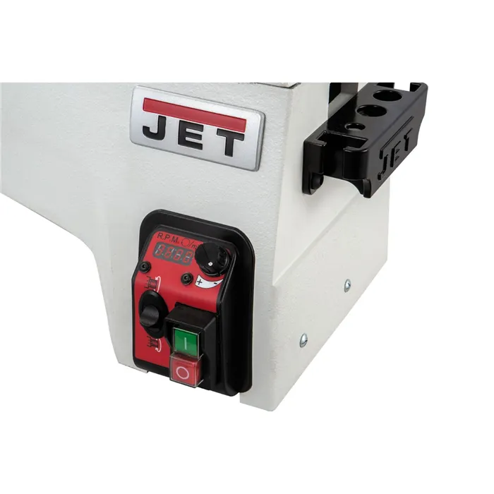 • Elektronická plynulá regulace otáček 60–3600 ot./min.• Zpětný chod a digitální displej otáček.• Silný 730W motor se zpětným chodem.• Plně litinová konstrukce s extra širokým 17cm ložem.• Litinový koník s poohybovým trapézovým šroubem Acme.• Mimořádně stabilní a bez vibrací.• Nový systém napínání řemene, vždy perfektní a rychlá změna.• Ergonomicky umístěné ovládací prvky po pravé ruce.• Indexace 24 pozic vřetene po 15°.JET JWL-1221VS je kompaktní revoluční soustruh nové generace plný unikátních konstrukčních řešení, které usnadní a zpříjemní práci a obsluhu stroje. Celý soustruh byl navržen tak, abyste měli při soustružení vždy vše pod kontrolou. Je vyroben z litiny s úctyhodnou šířkou lože 170 mm, zajišťující vysokou stabilitu, minimální vibrace a mnohem lepší podporu při soustružení. Celková hmotnost se totiž zvýšila na 55 kg. Vřeteno je uloženo v masivních ložiscích a je přes řemen poháněno 730W motorem s plynulou regulací otáček a s digitálním ukazatelem na LCD displeji, včetně přepínače zpětného chodu. Kompletně nový je systém napínání řemenu. Vřeteno lze indexovat po 15° pomocí blokovacího mechanismu. Všechny ovládací prvky – regulace otáček, digitální ukazatel, volič vpřed a vzad – jsou umístěny vpravo, vždy po ruce.Tento skvělý inovativní soustruh můžete rozšířit o podstavec, prodloužení lože o 560 mm a podstavec pro prodloužení. Je to bezpochyby nejlepší malý soustruh pro profesionální použití, optimální pro malé a střední soustružené obrobky.• Typ: JWL-1221VS• Doporučené použití: Profesionální výroba• Příkon / Výkon (230 V): 940 / 730 W• Otáčky: 60–900, 110–1800, 220–3600 ot./min.• Max. točný průměr nad ložem: 315 mm• Osová vzdálenost: 450 mm• Osová vzdálenost s prodloužením: 1092 mm (volitelná výbava)• Závit vřetene: M33x3,5• Kužel vřeteníku / koníku: MK2 / MK2• Otvor vřeteníku / koníku: 9,5 / 9,5 mm• Zdvih koníku: 57 mm• Délka x šířka x výška: 853 x 280 x 450 mm• Hmotnost: 55 kgSoučást balení:• Unašecí hrot• Otočný hrot• 150mm opěrka• 250mm opěrka• 75mm upínací lícní deska• Montážní nářadí• Držák pracovních nástrojů