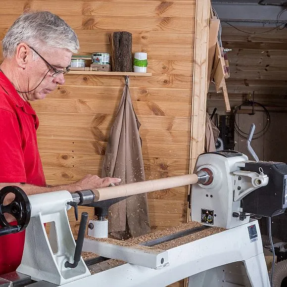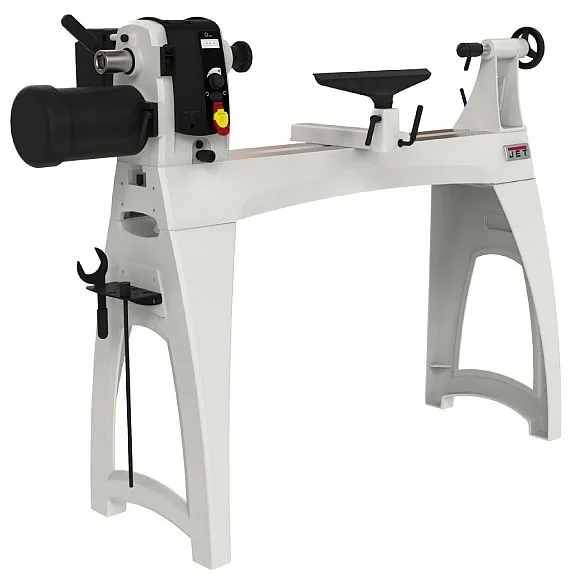 • Možnost prodloužení lože o 508mm• CE certifikace.Soustruh JWL-1640VS s plynule nastavitelnými otáčkami je vybaven špičkovými funkcemi, které jej výrazně odlišují od ostatních soustruhů ve stejné kategorii. Posuvný vřeteník je otočný o 360 stupňů se 7 přednastavenými pozicemi. To umožňuje zvolit nejpohodlnější způsob soustružení velkých obrobků, jako jsou mísy a tácy. Otáčky je možné regulovat pomocí elektronické regulace v rozmezí 40–3200 ot./min. Nový systém uzamykání vřeteníku je umístěn z přední strany a při povolování vřetene již nepotřebujete chodit k zadní straně stroje.Vřeteno je uloženo v prodlouženém krytu s dvojitými ložisky což umožňuje pevnější upnutí a stabilitu obrobku. Vřeteno má indexaci pro 36 pozic. Horní část vřeteníku je opatřena pryžovou podložkou pro odkládání.Vřeteno je poháněno výkonným 1,1kW motorem, který dodává vysoký točivý moment v širokém rozmezí otáček. Pohodlnou změnu otáček zajišťuje frekvenční měnič (inverter) se zabudovaným filtrem EMI, který je propojený s čitelným digitálním displejem. Displej je přehledně umístěn na přední straně vřeteníku.U koníku je použit osvědčený trapézový kluzný závit typu Acme, který zlepšuje pohyb koníku, přesnost ovládání a nastavení. Koník je masivní konstrukce se zcela novým klínovým uzamykacím systémem. Tím je zajištěna vysoká tuhost a pevné a stabilní upnutí k loži soustruhu.Plně vybavený soustruh JWL-1640EVS poskytuje veškerý komfort, ovládání, všestrannost a pohodlí oceňované dnešními soustružníky u nás i ve světe.• Typ: JWL-1640EVS• Doporučené použití: Profesionální výroba• Příkon / Výkon (230 V): 1,6 / 1,1 kW• Otáčky: 40–1200, 100–3200 ot./min.• Max. točný průměr nad ložem: 419 mm• Osová vzdálenost: 990 mm• Závit vřetene: M33x3,5• Kužel vřeteníku / koníku: MK2 / MK2• Otvor vřeteníku / koníku: 17 / 17 mm• Vysunutí z koníku: 108 mm• Délka x šířka x výška: 1854 x 508 x 1334 mm• Hmotnost: 170 kg