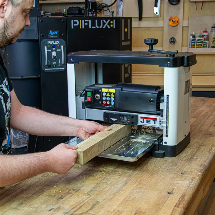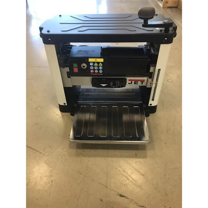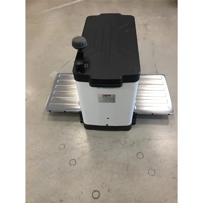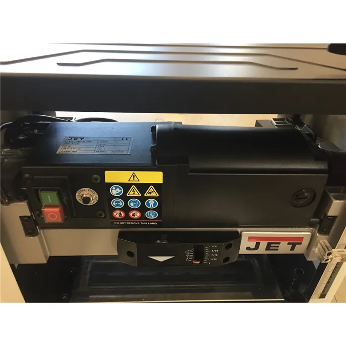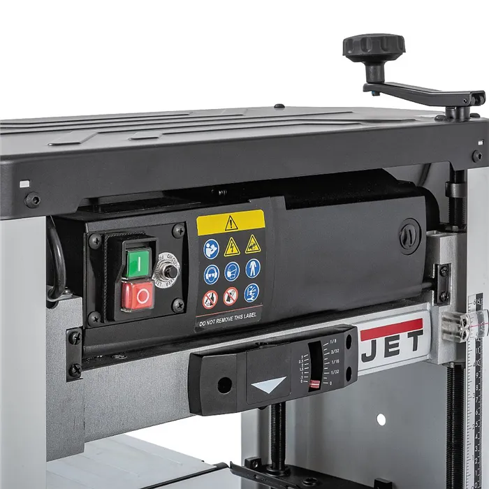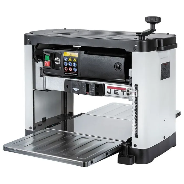• Inovovaný design a výkonný motor.• Úběr materiálu až 2,4 mm.• Sklopný vstupní a výstupní stůl.• Dvounožový válec s oboustrannými noži.• Indikátor úběru materiálu na přední straně stroje.Hoblovací válec je nově osazen dvěma oboustrannými noži, které díly speciálnímu magnetickému držáku nevyžadují dodatečné seřizování jejich výšky. Upravené otáčky a vhodná rychlost posuvu zajišťují vynikající povrch opracování a vyšší efektivitu práce. Stroj je vybaven ochranou proti přetížení s bezpečnostní pojistkou. Maximální tloušťka materiálu pro opracování je 152 mm a maximální šířka 318 mm. Sklopné stoly s prolisy poskytují podporu pro dlouhé dílce. Kryt hoblovacího válce umožňuje připojení průmyslového vysavače nebo odsavače pilin.Díky výkonnému motoru tloušťkovací frézy JET je možný úběr materiálu až 2,4 mm při jednom protažení.• Typ: JWP-12• Doporučené použití: Řemeslník• Příkon (230V): 1,7 kW• Otáčky: 10 000 ot./min.• Průměr válce: 50,8 mm• Rychlost posuvu protahování: 7,9 m/min.• Max. úběr: 2,4 mm• Max. šířka dílce: 318 mm• Max. tloušťka dílce: 152 mm• Odsávání: 50 nebo 100 mm (redukce)• Délka x šířka x výška: 500 x 710 x 465 mm• Hmotnost: 25 kgSoučást balení:• 1 sada oboustranných hoblovacích nožů (ve válci)• Magnetický držák pro usazení hoblovacích nožů• Nářadí pro výměnu hoblovacích nožů