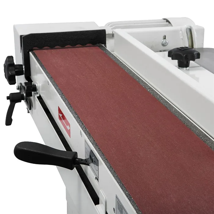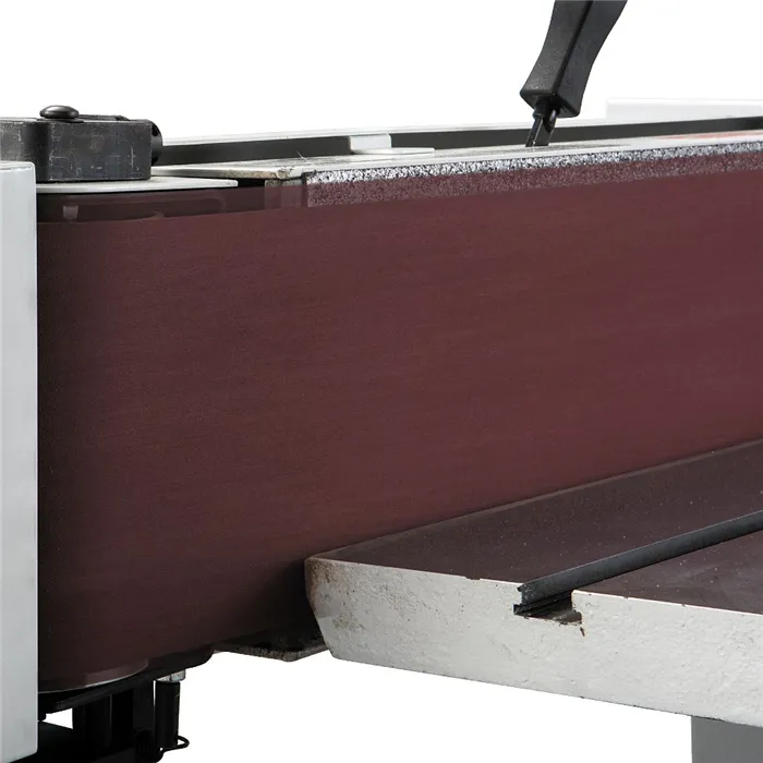 Hranová oscilační bruska slouží k broušení hran a rádiusů. Bruska umožňuje plynulé naklápění brusného pásu, broušení v horizontální nebo vertikální poloze. Brusný pás osciluje 50 kmitů / min bez škrábanců na povrchu materiálu. Masivní litinový stůl může být snadno přesouván nahoru nebo dolů, takže lze využít celou plochu brusného pásu. Poháněný válec je pogumovaný, což zajišťuje maximální přenos síly na brusný pás. Napínání a oscilaci lze jednoduše seřídit. Základ stroje je stabilní, vyroben z oceli, což zvyšuje stabilitu, minimalizuje vibrace. Bruska má velkou skříň pro skladování brusných pásů. Je vhodná pro dílny, údržby i nadšené kutily.