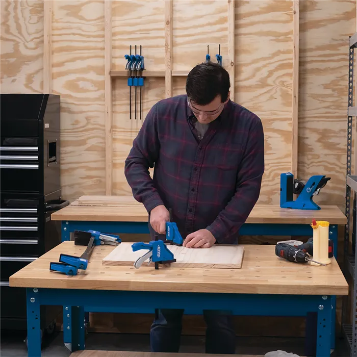 Vytvořte si ve své dílně univerzální pracovní prostor s Kreg Dřevěným pracovním stolem v několika velikostech s otvory. Na stole můžete okamžitě provádět nejrůznější práce se dřevem. Jistotu při práci Vám zajistí rovná, odolná deska z tvrdého dřeva o tloušťce 38 mm s vyvrtanými 19 mm otvory pro snazší upnutí materiálu. Deska je ošetřena ochrannou vrstvou pro snadné odstranění lepidla, barvy a skvrn. Nastavitelné nohy umožňují upravit výšku stolu dle Vašich potřeb. Svůj stůl můžete vybavit dalším příslušenstvím Kreg, například stolními svěrkami. Z desky si pak vytvoříte stůl pro montáž nebo místo pro upevnění nářadí. Pro snadné přemisťování stolu po dílně doporučujeme vybavit stůl pojezdovými kolečky (prodáváno samostatně).