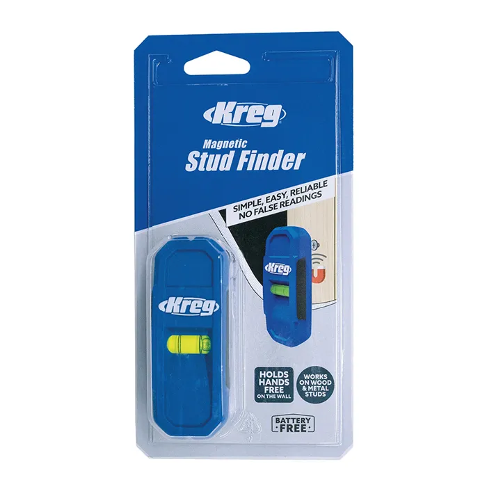 Vyhledejte hřebíky rychle a jednoduše pomocí malého Kreg Magnetického detektoru trámů, který se vejde do kapsy. Detektor je vybavený silnými magnety z kovů vzácných zemin a detekuje tak hřebíky s vynikající přesností. Vodováha a výřez pro značení usnadňují ukotvení skříní, polic a jiného nábytku. Detektor není na baterie a zůstane pevně viset na stěně, Vám tak zůstanou obě ruce volné, montáže pak můžete provádět rychle a bez obav z nepřesností.• Dva silné magnety pro detekci šroubů a hřebíků.• Pevně drží se na stěně.• S vodováhou pro přesnou montáž.• Ergonomický design s protiskluzovým povrchem.• Přesně vycentrované výřezy pro značení.• Pro dřevěné i kovové konstrukční trámy.
