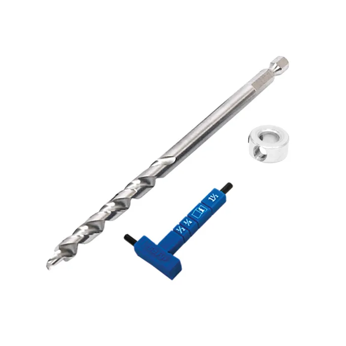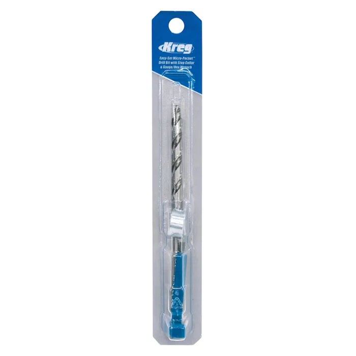 Kreg Micro Vrták pro skryté spoje s nastavitelným dorazem, ukazatelem tloušťky materiálu a inbusem pro Micro Vrtací pouzdra. Vrtá o 33 % menší otvory použitím Svrtávacích přípravků 520 a 720.• Nastavitelný doraz: značení pro materiály o tloušťce 12 mm, 19 mm a 38 mm.• Šestihranná stopka 6,3 mm pasuje do jakéhokoli sklíčidla.• Kompatibilní se všemi Kreg Svrtávacími přípravky.