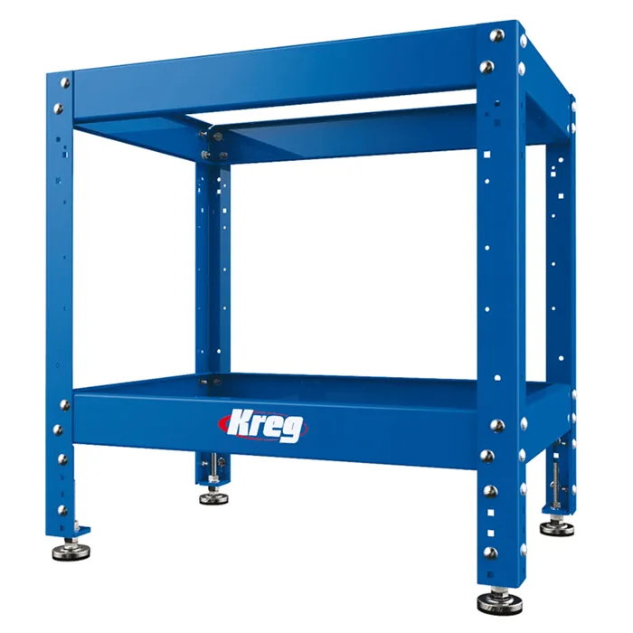 Nastavitelný a robustní Kreg Multifunkční podstavec je vyroben z odolné oceli. Výšku lze nastavit v rozmezí od 790 až 990 mm. Podstavec o rozměrech 510 mm x 710 mm je vybavený rektifikačními nožičkami pro vyrovnání na nerovné podlaze. Nohy mají předvrtané otvory pro montáž volitelného příslušenství. Podstavec je vhodný i pro KCT a PRS1025. Můžete jej také použít k sestavení vlastního pracovního stolu.