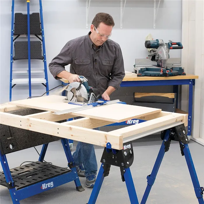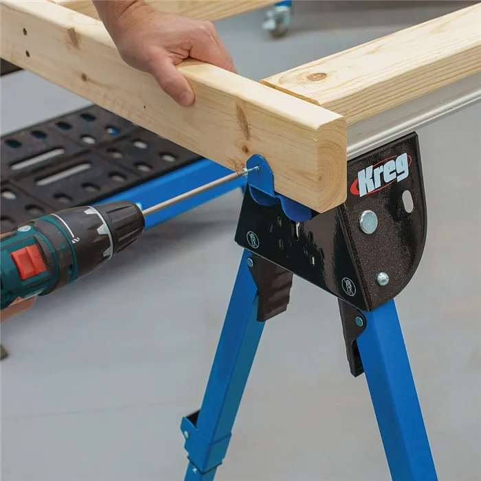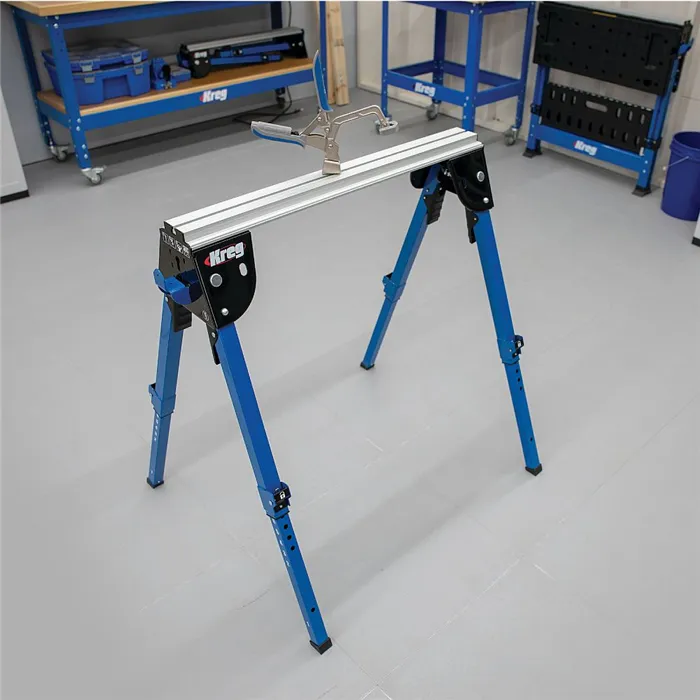 • Lze rozšířit o druhou kozu KWS500 nebo o mobilní pracovní stůl KWS1000.• Robustní pracovní podstavec díky ocelové a hliníkové konstrukci.• Při použití ve dvojicích unese pracovní koza od firmy Kreg hmotnost 997 kg. Ideální pro velké a těžké práce.• Díky dodané svěrce pro pracovní stůl Automaxx lze s KWS500 bezpečně pracovat bez nutnosti držení dílce rukou.• Součástí balení jsou boční háky pro vložení dřevěného hranolu, díky kterému vytvoříte velký pracovní stůl a ochráníte kozy před poškozením od kotouče.• Nastavitelné nožičky zajišťují správnou pracovní výšku a stabilitu i na nerovném terénu.• Nohy jsou zcela zasouvací, díky tomu je KWS500 obzvláště prostorově úsporný a snadno se přemisťuje.Všestranná, stabilní a rozšiřitelná koza. Není to jen dříč, ale lze jej během okamžiku přeměnit na pracovní stůl, pilu, vrtací stanici nebo upínací stůl pro montáže a opracování materiálu. Skvělá alternativa nebo doplněk k pracovnímu stolu KWS1000 od firmy Kreg s řadou chytrých řešení. S bočním adaptérem pro svěrku Automaxx můžete dílce přichytit i na výšku k boční straně kozy například pro hoblování nebo frézování hran.Drážka profilu v pracovní koze Kreg je kompatibilní i s rychloupínací svěrkou IGM 146-301.• Nastavitelné výšky: 168 mm (složené nohy), 626 mm, 804 mm (odpovídá výšce KWS1000), 829 mm, 855 mm, 880 mm, 906 mm• Rozměry horní hliníkové lišty (D x Š): 800 x 66 mm• Rozměry drážky (hliníková lišta): 14 x 8 mm (vhodné pro šroub M8 s SW13)• Nosnost: 498 kg na jednu nohu, 997 kg (při použití obou)• Konstrukce: eloxovaná hliníková profilová lišta, spodní konstrukce a nohy z oceli• Kompatibilita: s mobilním pracovním stolem KWS1000• Rozměry (ve složeném stavu) (D x Š x V): 805 x 210 x 175 mm• Hmotnost: 8,5 kgObsah balení:• 1x pracovní koza• 1x svěrka na pracovní stůl (KBC3)• 2x boční háky pro dřevěné hranoly• 2x cylindrické knoflíky včetně šroubů pro připevnění hranolu na horní profil kozy
