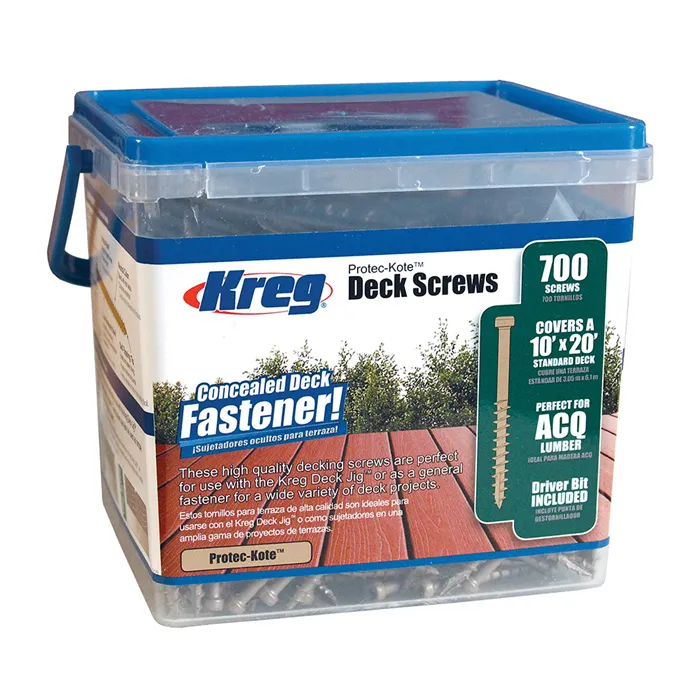• Vyrobeny z tvrzené oceli s povrchovou úpravou Protec-Kote.• Samořezný hrot a hrubý částečný závit.• Délka vrutu 51 mm.• Pro Kreg Přípravek pro vrtání terasových prken.• Dodáváno s vrtákem.Vytvořte dokonalou terasu s Kreg Protec-Kote Vruty pro terasy a Kreg Přípravkem pro vrtání terasových prken. Tyto kvalitní vruty jsou vhodné pro práci s Kreg Přípravek pro vrtání terasových prken. Mají samořezný hrot pro rychlé a snadné šroubování a hrubý částečný závit, který zajišťuje těsný spoj terasového prkna a hranolu. Jsou vyrobeny z tvrzené oceli pro vynikající pevnost a s trojvrstvou povrchovou úpravou Protec-Kote pro maximální odolnost proti korozi. Malou hlavu a neutrální barvu vrutů oceníte i při jiném venkovním projektu. Délka vrutů 51 mm pro terasová prkna 25 mm a 32 mm.Součást balení:• Kreg Protec-Kote vruty pro terasy 51 mm, 700 ks• Kreg Vrták pro KJDECKSYS20