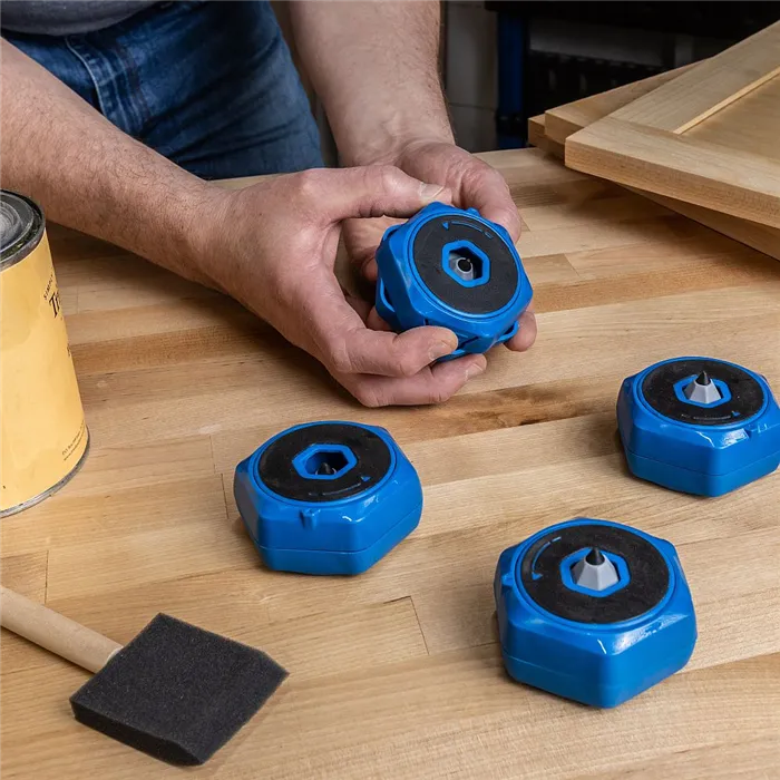 • Výsuvný hrot s GripMaxx povrchem.• GripMaxx protiskluzový povrch.• Výška podložek 38 mm.• Nosnost 90 kg (sada 4 ks).Kreg Protiskluzové podložky jsou vhodné pro fixaci materiálu při jakékoliv práci. Položením dílce na podložky vznikne mezi stolem a dílcem mezera vysoká 38 mm, která vám umožní dílec pohodlně brousit, řezat, frézovat atd.