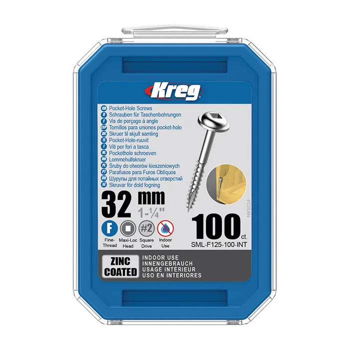 Pozinkované šrouby pro skryté spojeKreg Zinc Maxi-Loc Šrouby jsou dobrou volbou pro různé interiérové práce. Pozinkované šrouby poskytují dostačující ochranu proti korozi a slouží jako cenově dostupná alternativa ke Kreg šroubům Blue-Kote a Nerez. Nevystavujte vlhkosti.• Hlava Maxi-Loc• PozinkovanéVarianty:• 25 mm, 32 mm, 38 mm, 51 mm, 64 mm• Hrubý závit, jemný závit• 50 ks, 100 ks, 125 ks, 250 ks, 500 ks, 1200 ks