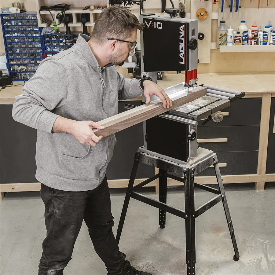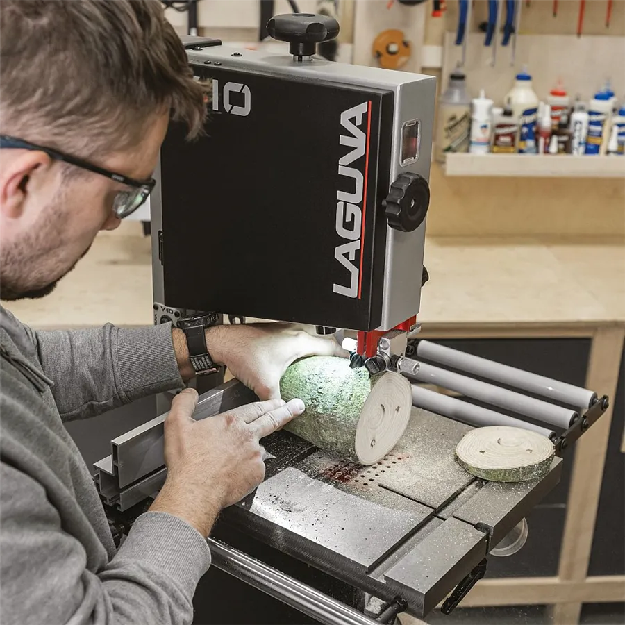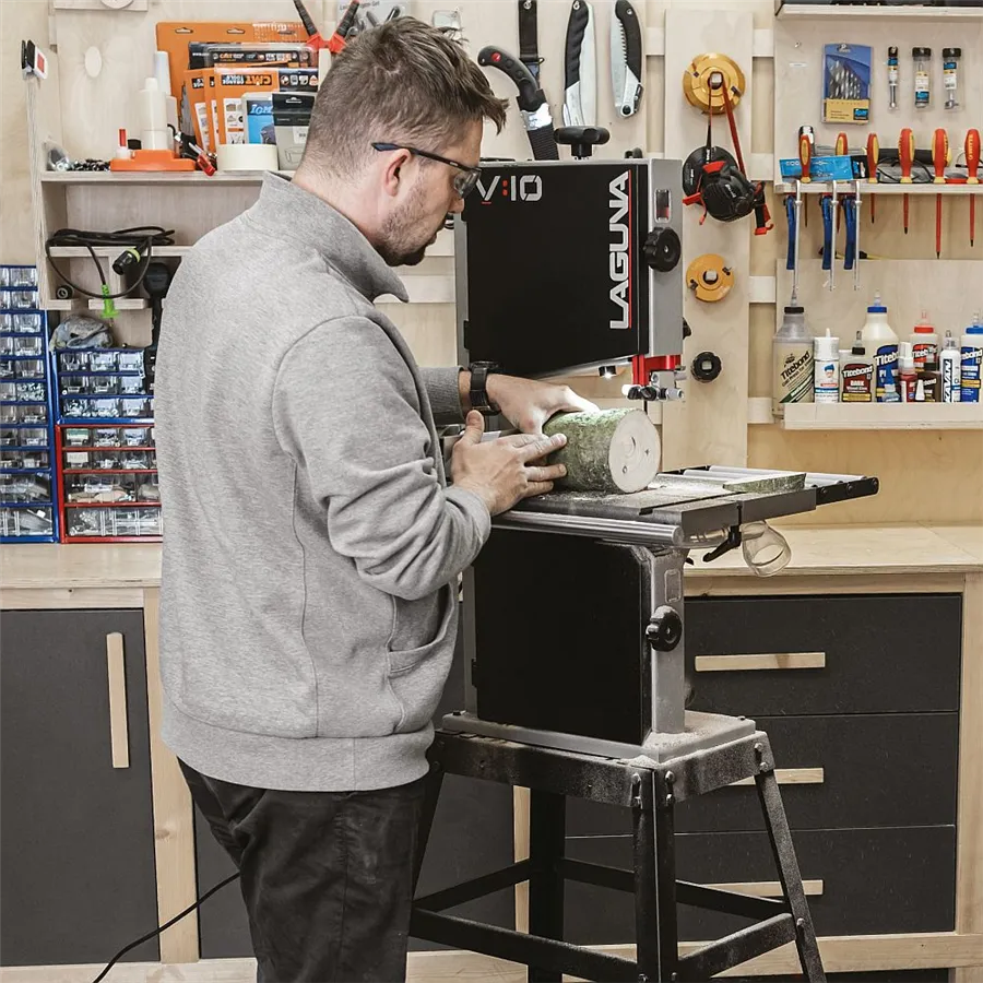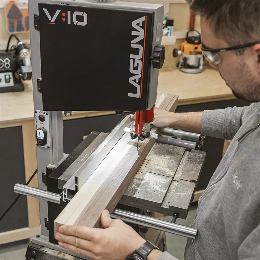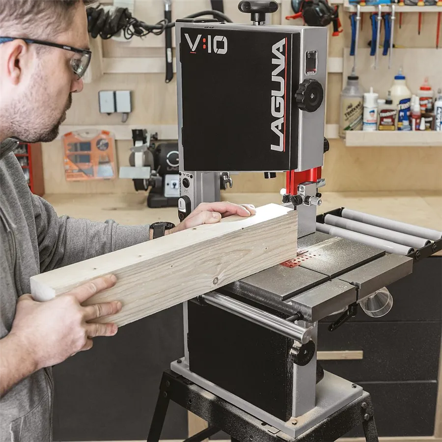 Laguna V10 je kompaktní 10" pásová pila s litinovými koly, 750W indukčním motorem a dvěma rychlostmi pásu. Nabízí přesné řezy do výšky 146 mm a profesionální výbavu.