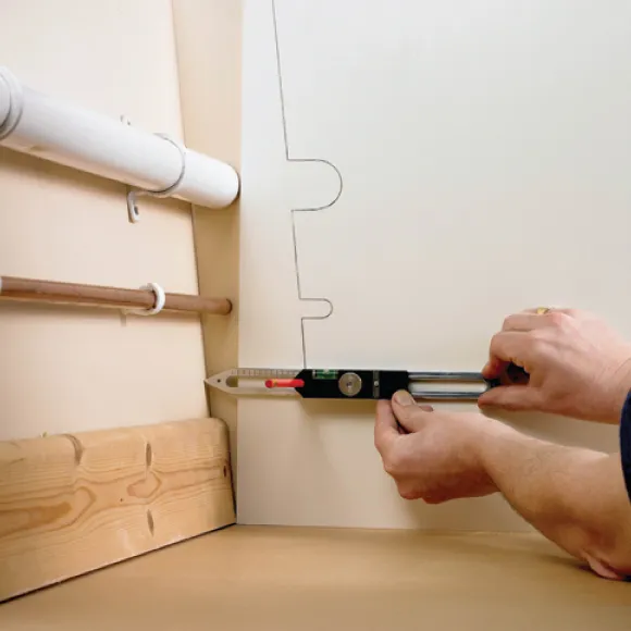 Multifunkční rýsovací přípravek - pravítko je určené pro přenos obrysů z jedné plochy na druhou.Pravítko obsahuje 15 možností funkcí a přenosů.Toto multifunkční pravítko mohou používat tesaři, truhláři, zedníci atd.Pravítko lze také využít jako vodováhu nebo ořezávátko.Ocelové pravítko s ryskami po 5 mm a 6,35 mm.