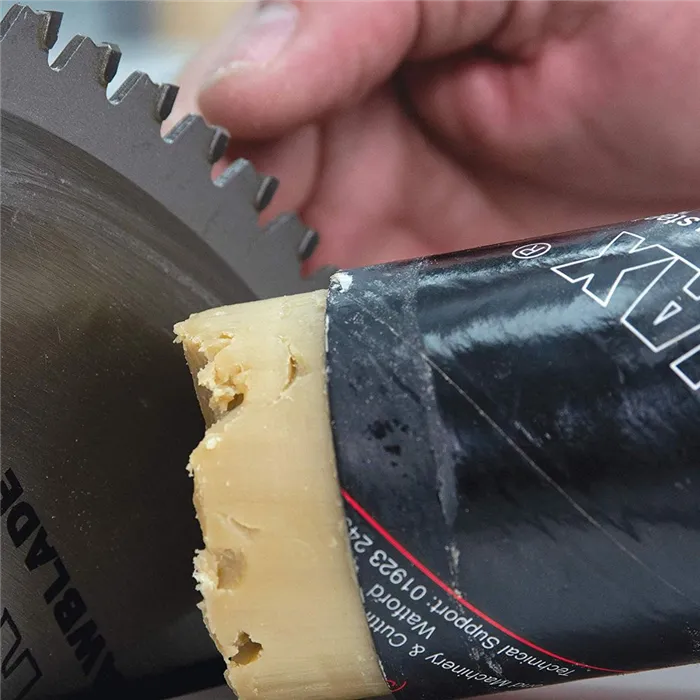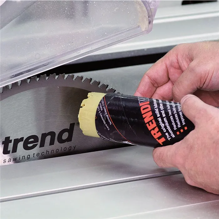Přípravek Trendiwax prodlužuje životnost ostří zubů, snižuje zahřívání kotouče při řezání.Vhodné při řezání hliníku.Doporučujeme nanášet v pravidelných časových intervalech.Nanášejte přímo na zub v klidové poloze pily.